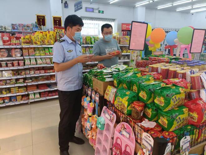 执法人员检查食品保质期。马焕君 摄
