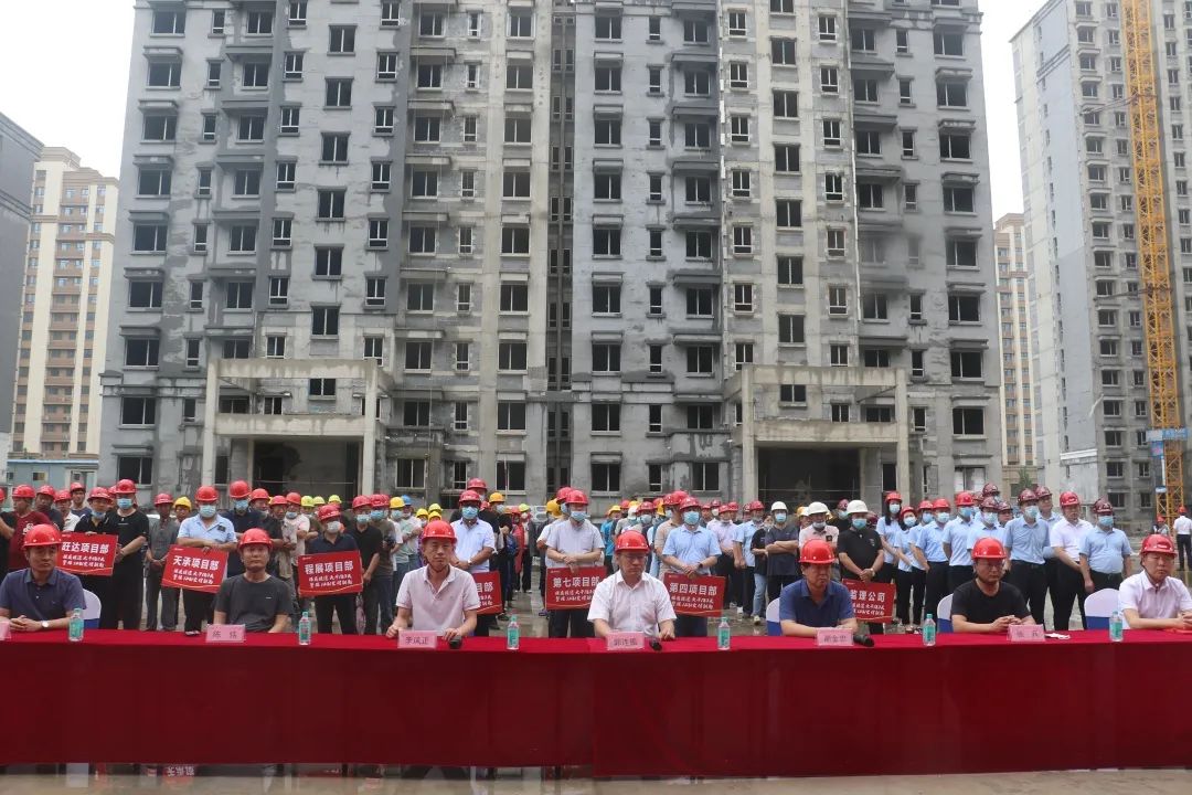 为鼓舞士气、坚定决心,力保工程节点,确保项目交付,7月6日,泰华地产枣强丽景蓝湾召开保交付誓师大会,全面吹响了“大干180天,誓保交付”的号角。枣强县住建局相关负责人,泰华集团总裁郭连振、总裁助理孟玲兵、区域一公司总经理张勇及相关项目负责人、总包单位程展公司、天承公司、旺达公司、泰华建筑公司第四部、第七部、第十部、上润门窗公司、监理单位等8家现场主要施工单位负责人,以及项目全体参建员工,共计300余人参与了此次誓师大会,凝心共战保进度、保质量、保交付。