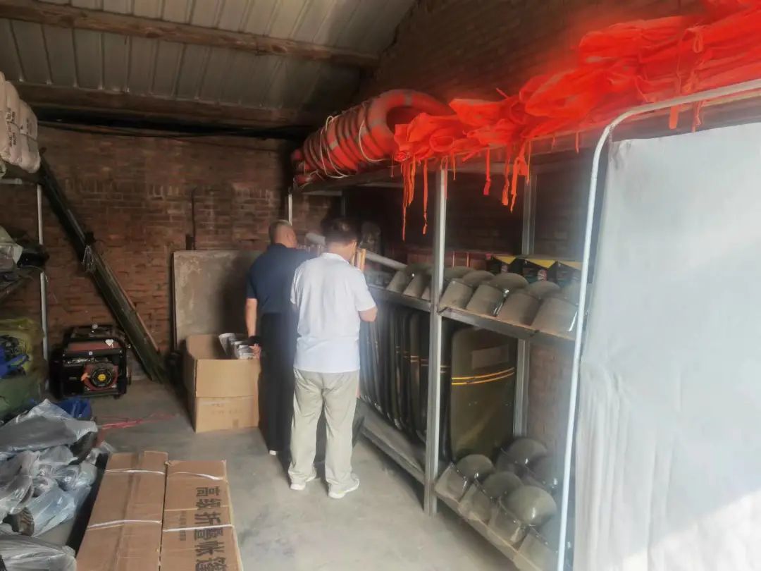 抓储备 强化应急处置。对辖区内所有可用机械进行全覆盖摸排,积极动员机械持有人参与防汛备汛工作,分村分类建立台账,确保机具随时调得出、用得上。对全镇防汛物资进行摸底统计登记在册,购置救生衣、铁锨等各类物资540件,协议租赁砂石料、桩木、砖1330方、铅丝1吨、麻袋1000条、苫布4块并设专区分类储备。严格落实防汛值班制度,坚持镇防汛指挥办公室24小时值班,随时掌握气象变化和汛情信息。同时,各村成立应急小分队时刻待命,确保出现情况能够第一时间进行有效处置。