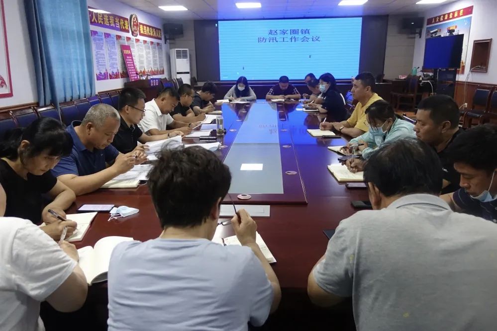 抓责任 强化组织领导。赵家圈镇多次召开防汛抗旱专题会,制定完善防汛应急预案,成立了以镇党委书记为第一指挥长、镇长为指挥长的防汛指挥部,建立了包村干部为第一责任人、村党支部书记为直接责任人、村“两委”其他干部为主要责任人的三级责任体系,严格执行汛期值班和领导带班制度,突出重要区域防范、重要时段值守和重要环节把控,随时保持“备战”状态。