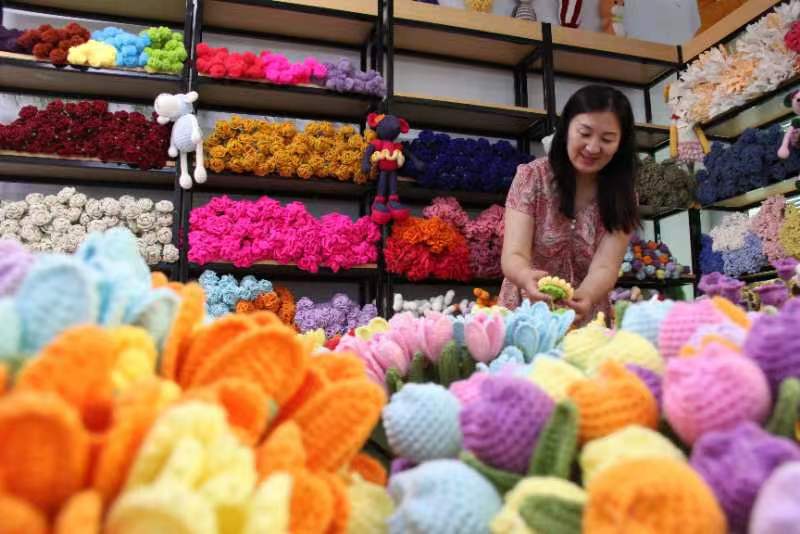 “销售出去的是产品,用心钩织的是作品。将手工编织技艺传递下去,才是我的初衷。”令张静红欣喜的是,2022年绒线编织技艺被列入第三批县级非物质文化遗产代表性项目名录。北京冬奥会上,颁奖花束打破传统,不采用鲜切花,采用了绒线花束。在传承编织技艺的道路上,张静红看到了希望和未来。近年来,她还作为客座讲师走进学校,将编织技艺搬上课堂,不仅培养了孩子动手动脑能力,而且使手工编织文化得以传承。