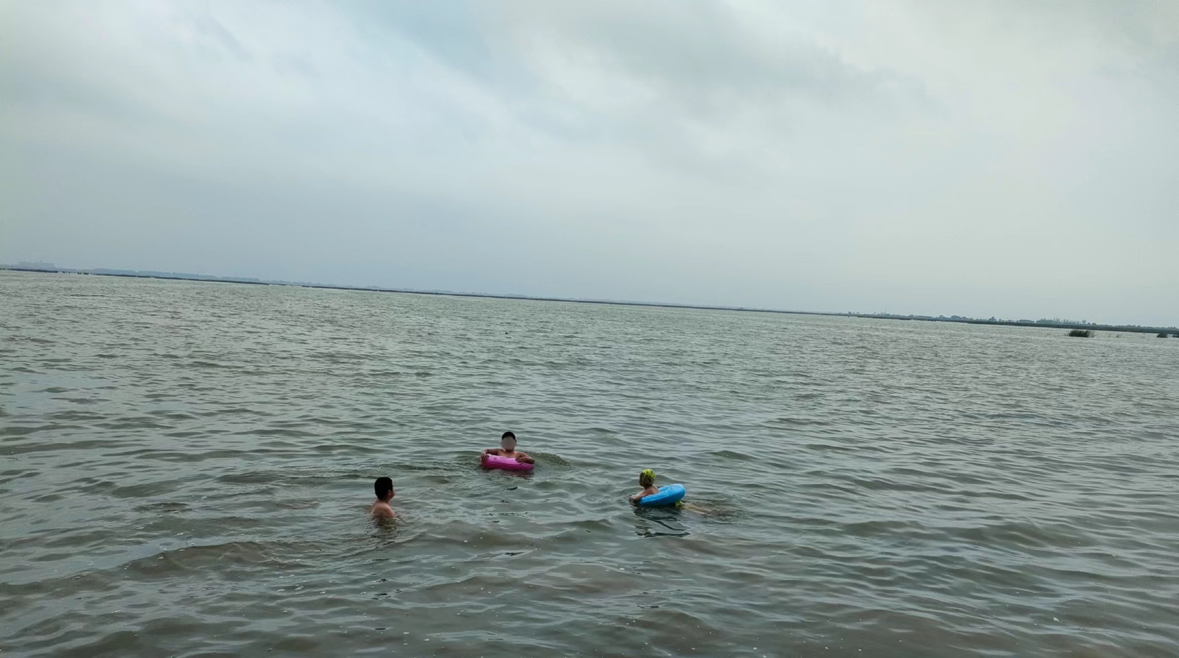 7月10日,记者在衡水湖北岸看到,几个小男孩在湖中游泳,他们身上有的戴着泳圈,有的什么防护设施也没有,如此行为,十分危险。