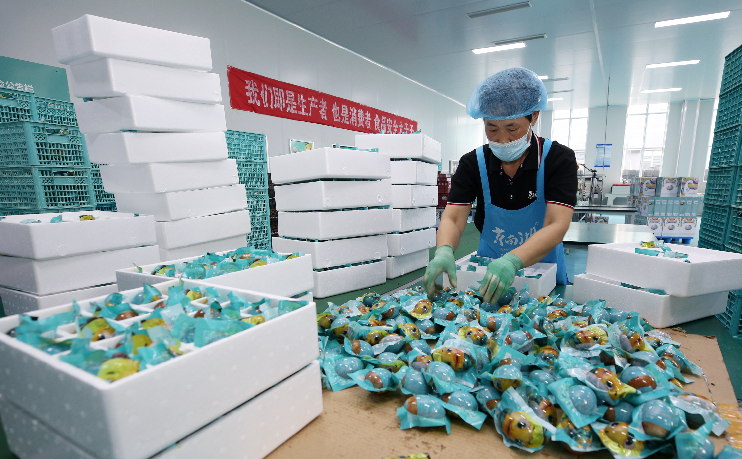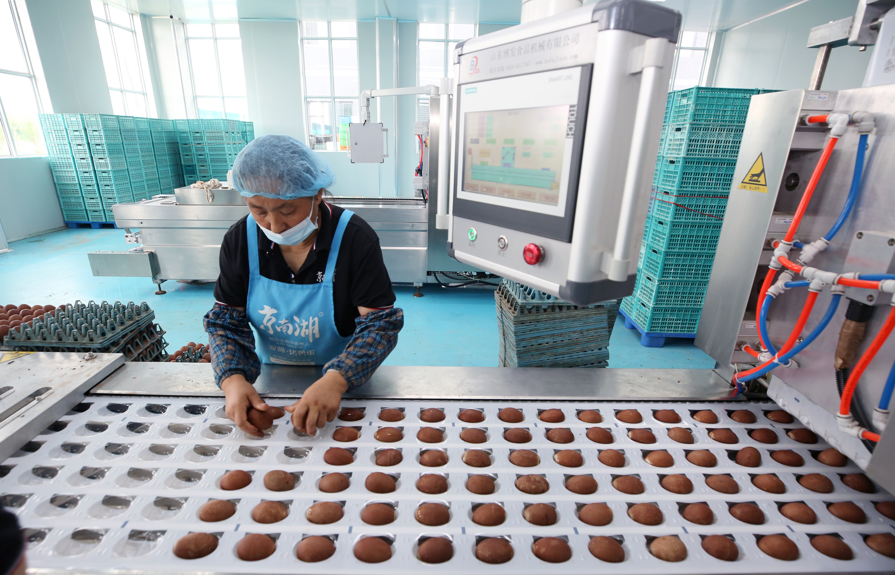 “正因为有了这些好帮手,烤鸭蛋出厂合格率能达到99.8%,消费者可以放心食用。”袁站磊说。