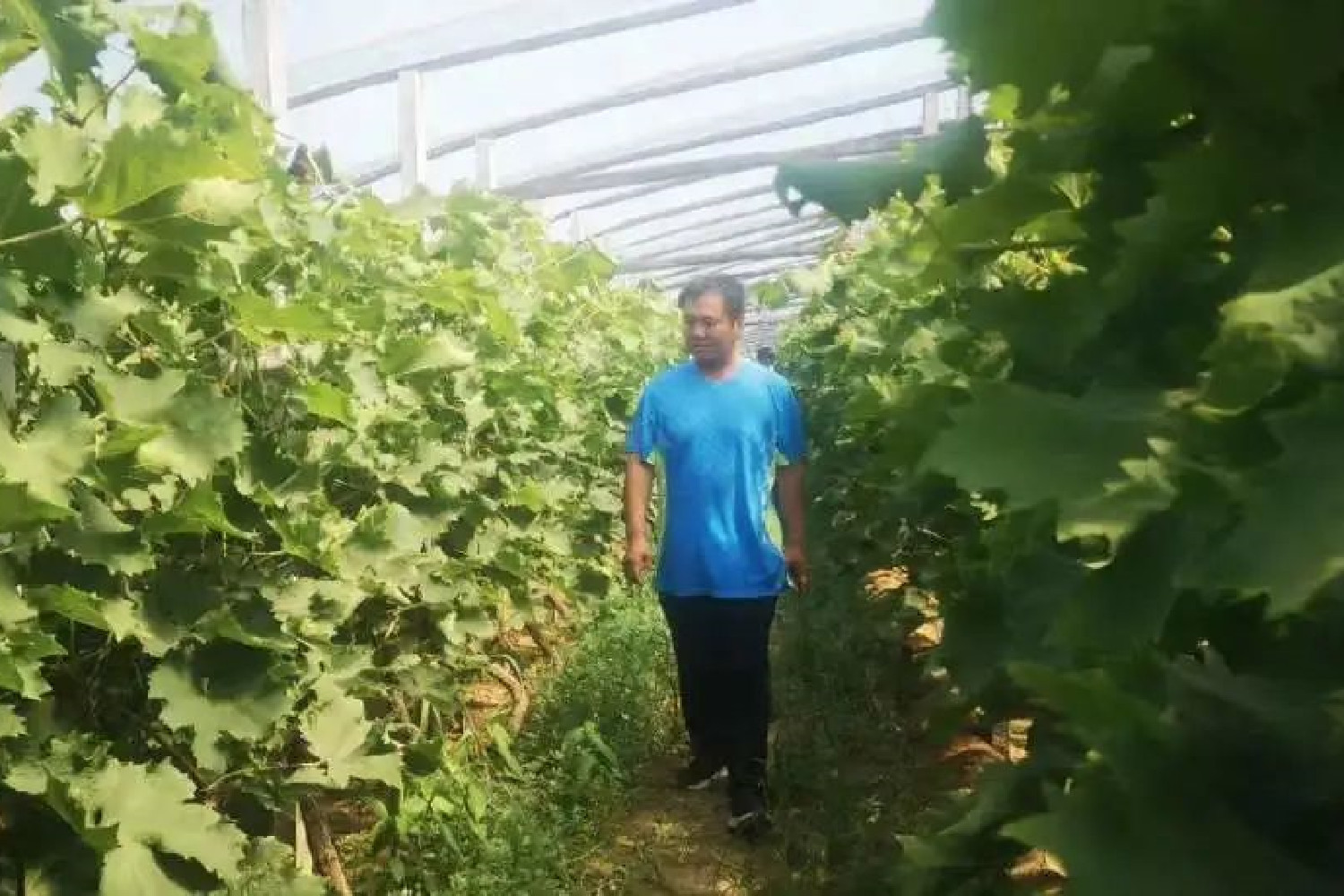 闫广彪正在大棚中查看葡萄长势。齐冰 摄
