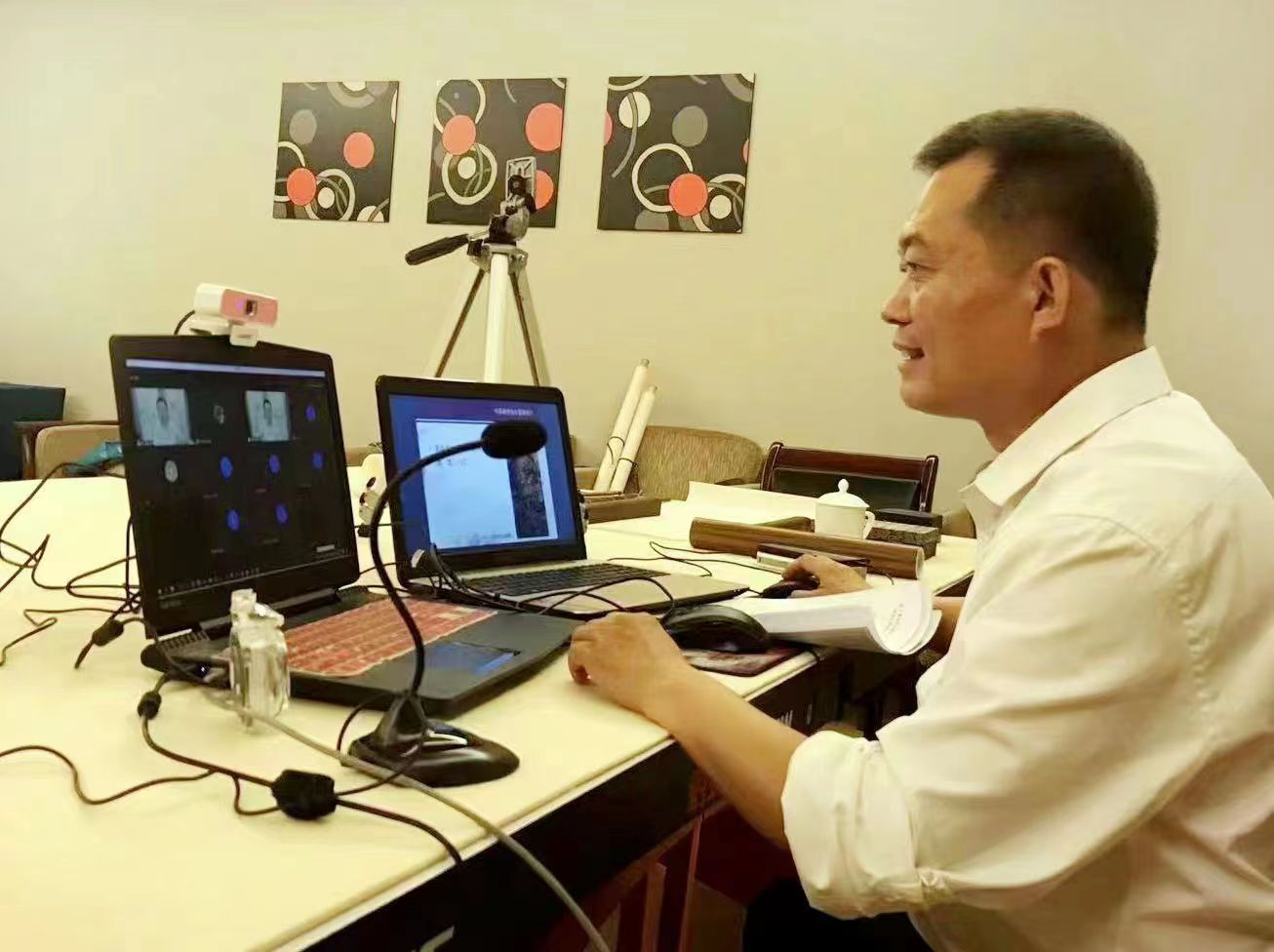 7月12日晚,在衡水迎宾馆内,一堂跨越亚非大陆的传统文化课开讲。我市画家崔清湖受商务部邀请,为利比里亚广播电台的广大干部职工线上讲授中国传统水墨画之美。
