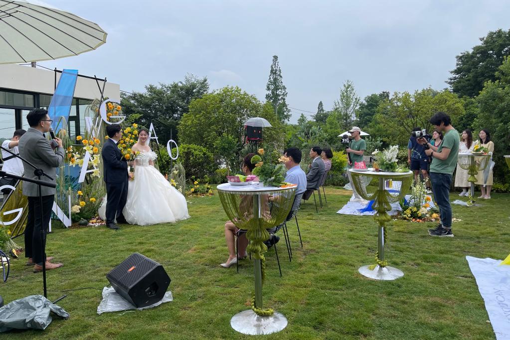 5月28日,一对新人在主题民宿“弥宫”举办婚礼。新华社记者 岳德亮 摄
