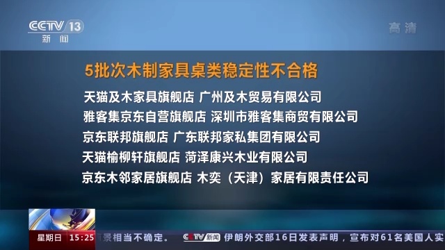 经检测,有5批次网售木家具桌类稳定性不合格。
