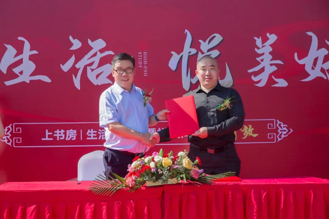 上书房项目负责人孙京玉与天力物业河北公司总经理李胜东上台签约,所有来宾共同见证这一历史性的时刻。强强联合,携手筑梦,衡水盛强地产把对话未来的锋芒与高瞻,转化成力量与柔情兼具的人居宽境,以此来致敬家乡。