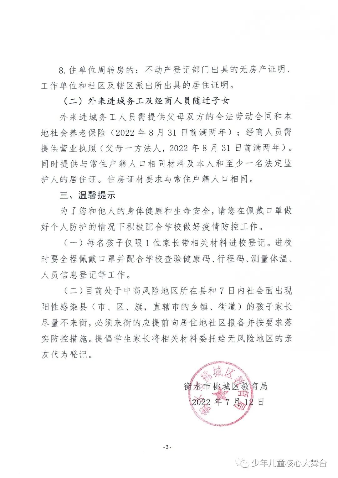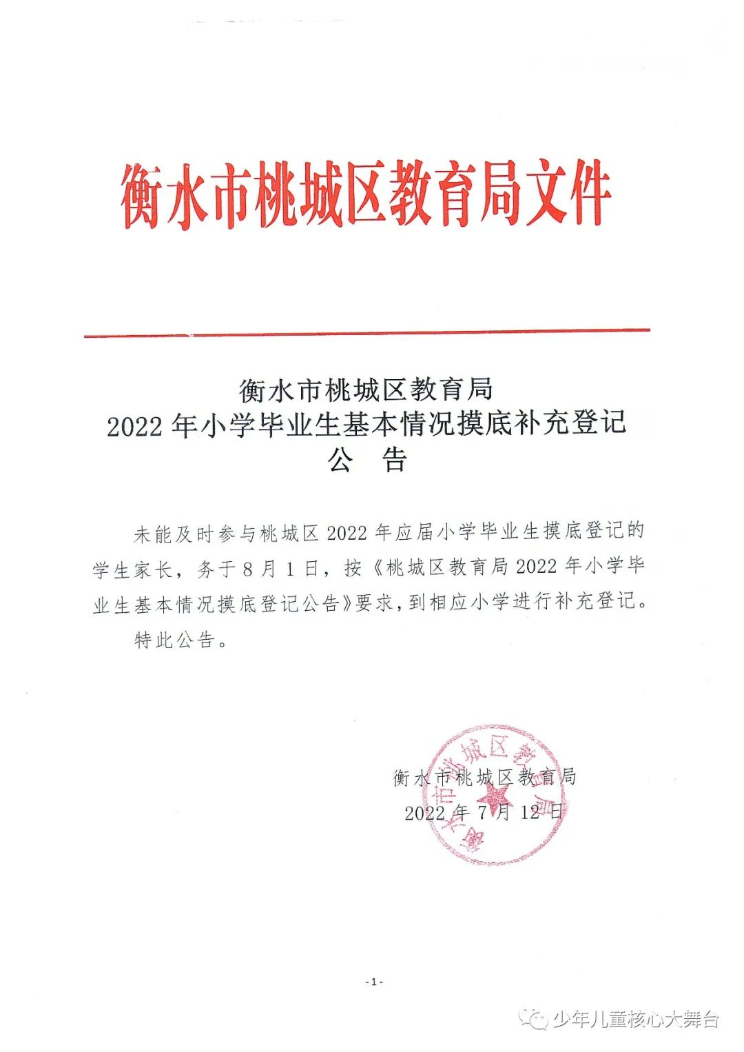 衡水市桃城区教育局2022年小学毕业生基本情况摸底补充登记公 告 来源:少年儿童核心大舞台 点赞 +1 微博 微信 我要评论 发布 相关推荐 衡水市桃城区退役军人事务局持续推动红色教育走深走实 衡水速览 01-15 衡水市桃城区福苑社区:打造“家门口学堂” 构建全龄教育服务圈 衡水速览 2025-07-11 办讲座 做科普 学法律 桃城区人社局开展国家安全教育主题系列活动 衡水速览 2024-04-15 办讲座 做科普 学法律 桃城区人社局开展国家安全教育主题系列活动 衡水速览 2024-04-15 7月28日起 桃城区小学进行入学适龄人口摸底登记 衡水速览 2022-07-18 热门 一天 三天 一周 1 衡水气象科普走进政务大厅 为世界气象日预热 2 衡水市区宝云公园:修剪养护已完工 静待花开映日红 3 把“最活跃地带”打造成“最坚强阵地” 衡水以三大抓手破题新就业群体党建 4 为思想“充电” 为幸福“加油” 武邑县总工会举办女职工主题讲座 5 衡水市环卫中心开展便道冲洗专项行动 为城市环境“洗颜换妆” 6 衡水市故城县抢抓农时全力保障春灌用水 7 枣强:植绿护绿正当时 多彩活动共筑生态家园 8 今年衡水将完成200户特殊困难老年人家庭适老化改造 9 衡水发布2月份食品安全“红黑榜” 194家生产经营主体上榜 10 吹拉弹唱 读书看报 武邑农家书屋成了村民“开心场” 1 守护安全 畅通消费 衡水市2026年“3·15国际消费者权益日”系列活动启动 2 人勤春来早 春管正当时——衡水市扎实推进春季农业生产纪实 3 【新闻发布】衡水发布2025年消费维权“成绩单”——12315热线受理投诉按时办结率100% 4 衡水全力加强麦田春管夯实夏粮丰收基础 5 衡水市工商业联合会(总商会)第七次代表大会召开 6 【新闻发布】每人每月最高800元 衡水向中度以上失能老年人发放养老服务消费补贴 7 【乡村行 看振兴】棚室轮作种植 果蔬四季“生金” ——看董师傅如何算好“增收账” 8 气温回暖年货干果易霉变 衡水市人民医院消化内科医生提醒:出现这三种情况切勿食用 9 武强县开展“3・15”金融消费者权益保护宣传活动 10 河北衡水:湖城春景入画来 1 《中华人民共和国献血法》首次修订——这些变化和每位献血者有关 2 春回大地寻野趣!衡水市民踏青挖野菜 安全尝鲜需谨记 3 衡水籍运动员刘晓彬米兰冬残奥会上夺银 4 景县举办庆“三八”国际妇女节文艺汇演 5 “巾帼芳华 为爱赴约” 衡水市总工会举办青年职工相亲交友活动 6 一场制造业的“数字春雨”——衡水市景县优化营商环境一线探访 7 首金诞生!衡水健儿省运会冰雪赛场勇创佳绩 8 春风送岗暖民心 衡水故城县举办残疾人专场招聘会 9 国防教育进校园 点燃青春报国志 我市军事机关送课下基层活动在衡水二中启动 10 书香润初心 玫瑰绽芳华 市总工会举办主题读书分享会 广告 广告 广告 24小时 1 学习笔记丨两会三到团组,习近平强调了这些事 2 金色相框|习近平2026年两会时间 3 感恩奋进 双争有我丨河北雄安保障房安居工程有限公司:贴心服务,守护疏解人员安居梦 4 雄安新区“雄才卡”发卡量超1.7万张 5 全国两会·代表委员说丨全国政协委员齐向东:雄安新区正成为新时代的创新高地和创业热土 6 央视《焦点访谈》·跟着总书记上两会丨河北代表裴红霞:让学生全面了解和认识中国式现代化建设 7 百姓看联播 | 开新局启新程,向着“十五五”出发! 8 河北省代表团代表:满怀信心奔赴岗位 9 新华社社评:在接续奋斗中推进强国建设、民族复兴伟业 10 习语丨从小黄花到小龙虾,总书记为何关注这些“小产品”?