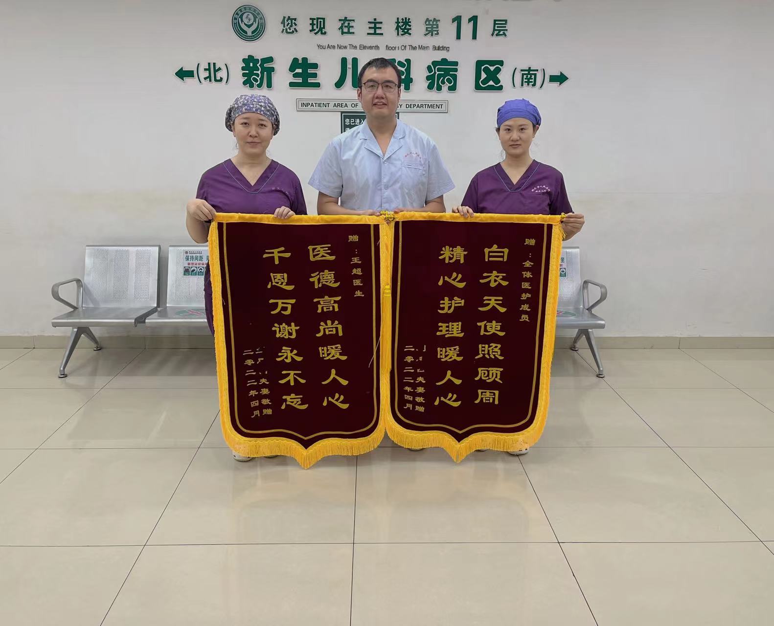 一名患者为新生儿科医护人员同时送来两面锦旗。