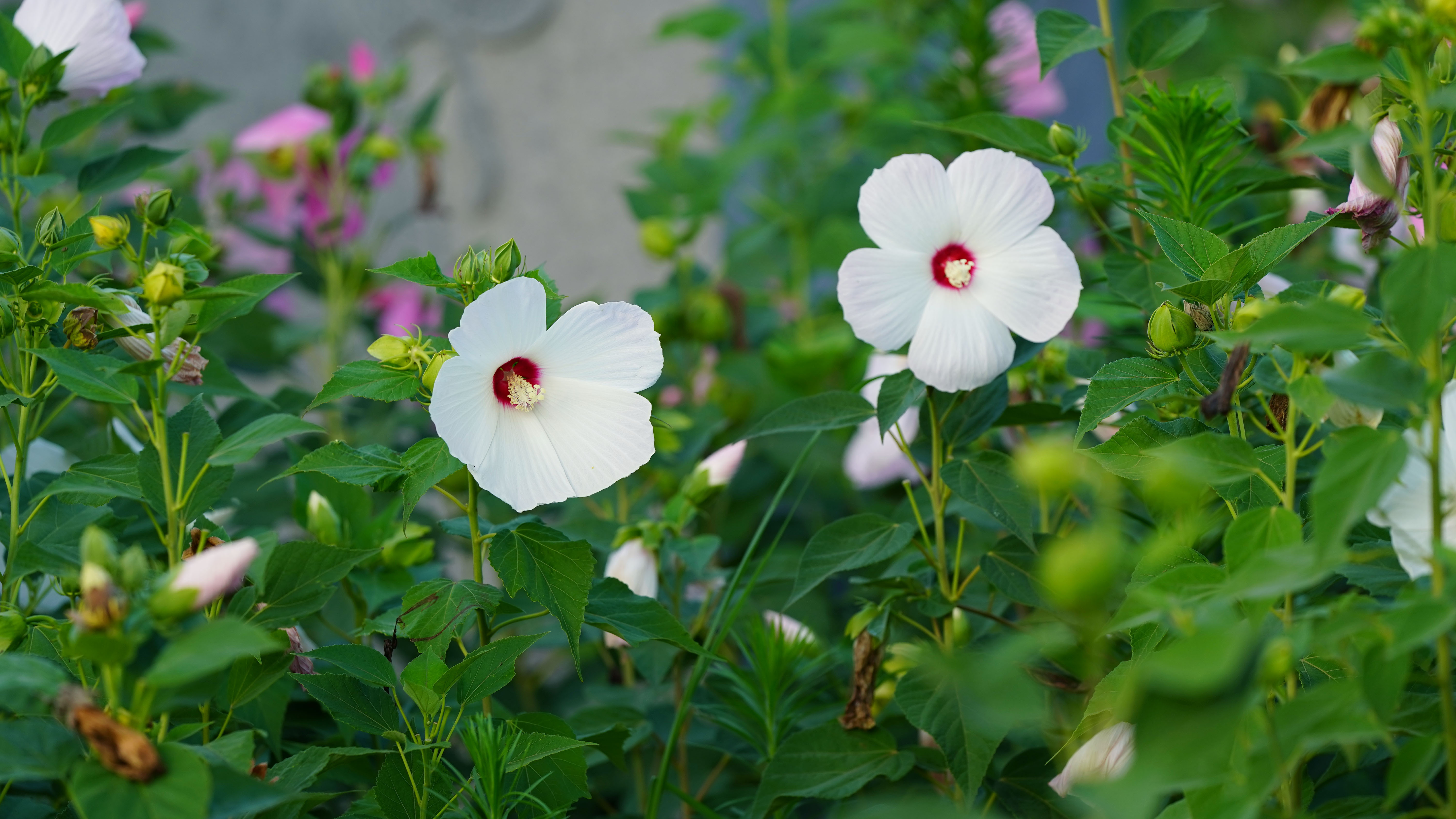 目前,衡水市故城县龙湖公园内的木槿花竞相绽放,美不胜收!木槿花朝开暮落,日日出新。唐代崔道融《槿花》诗曰:“槿花不见夕,一日一回新。东风吹桃李,须到明年春。”桃李想要再次开花,要等到第二年春天。这首诗将桃李与木槿花对比,赞美了木槿花“一日一回新”的特点。