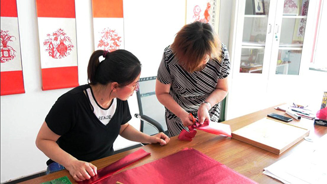 程霞正在和学员沟通剪纸技巧。郭亚旗 摄