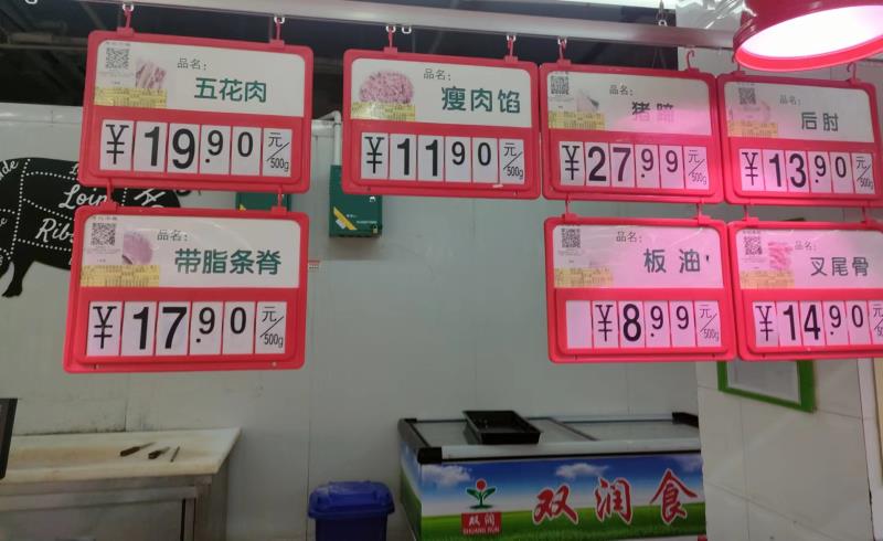 7月19日下午,记者在新华路一家大型超市的鲜肉区看到,前膀肉每公斤29.8元,较一个月前每公斤涨了8元,后座肉每公斤31.8元,较一个月前每公斤涨了6元,五花肉每公斤39.8元,较一个月前每公斤涨了10元。“给我来一斤五花肉,几天没买肉,又涨价了!”市民赵女士感慨,“今年年初猪肉便宜的时候每斤才8、9块钱,最近这段时间感觉猪肉一直在涨价,一天一个价。”