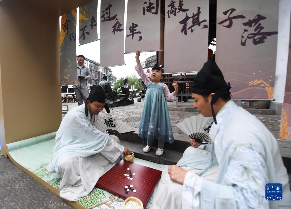市民身着传统服饰参加在浙江省建德市寿昌古镇举办的传统文化活动(2022年4月30日摄)。新华社记者徐昱 摄