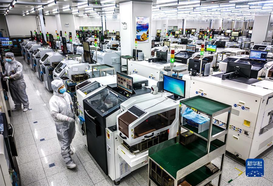 2022年5月26日,在安徽省合肥经济技术开发区的合肥通富微电子有限公司,员工在装片生产线上作业。新华社发 解琛 摄