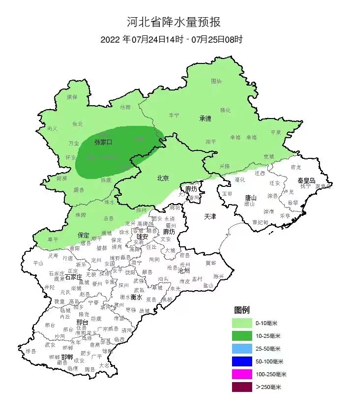 具体天气预报为:7月24日夜间,晴转多云,偏南风2~3级,最低气温23℃~24℃;7月25日,多云间阴,气温33℃~24℃;7月26日,雷阵雨,气温32℃~24℃;7月27日,雷阵雨,气温30℃~23℃;7月28日,阵雨转多云,气温29℃~23℃;7月29日,多云间晴,32℃~22℃;7月30日,晴,气温33℃~24℃。