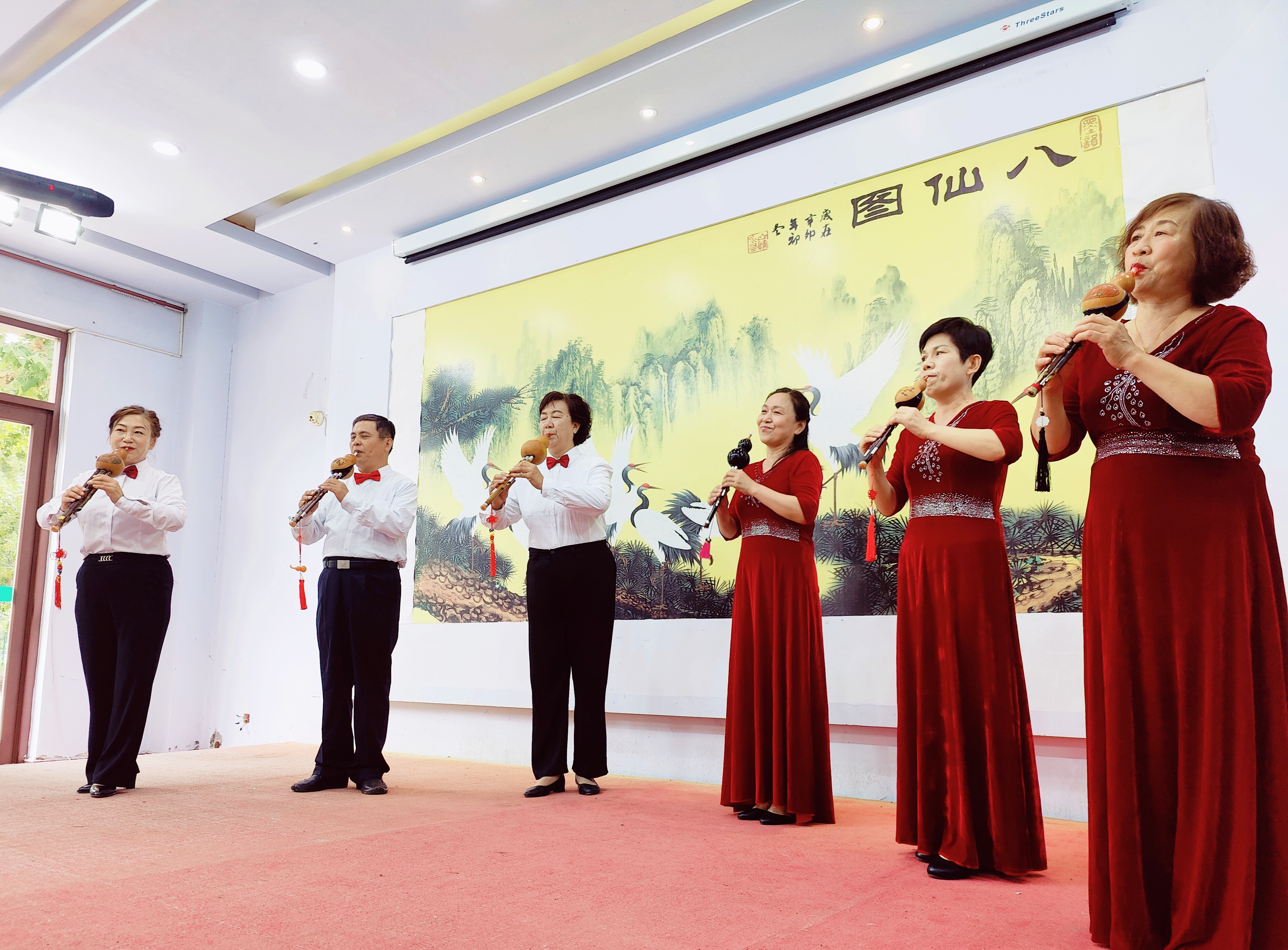 演出在旗袍走秀《映山红》中拉开了帷幕。随后,一首朗朗上口的经典红歌《军中绿花》,唱出了军人为保卫国家背井离乡的动人场面;《绣红旗》《今天是你的生日》唱出了对祖国的热爱和坚定的信念;伞舞《雨巷佳人》灵动而富有美感……快板、葫芦丝演奏等多种形式的精彩节目轮番上演。最后,演出在大合唱《歌唱祖国》中圆满落幕。