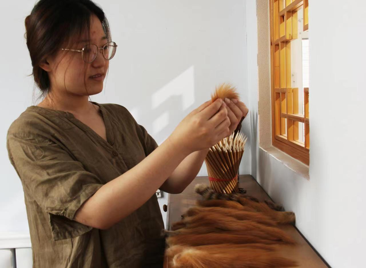 为了寻求新的销售渠道,李红玉在淘宝上开起了网店。随着在网上认识的书画界人士越来越多,李红玉从大家的反馈中了解到,不同的书画作品需要不同的毛笔,一支好毛笔对于书画爱好者来说非常重要。李红玉根据顾客需求,一步步调整工艺,最终做出让书画爱好者满意的毛笔。她对每一支笔把控都很严格,必须要精修、试笔后才会发货,“过不了自己这一关的笔绝对不卖。”李红玉用精益求精诠释工匠精神,她制作的毛笔深受顾客青睐,知名度越来越高,不仅销往国内多个省份,还接到了国外的订单。