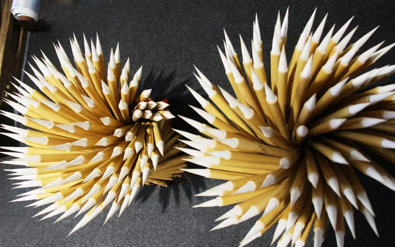 得知李红玉的想法,外公非常开心。侯店村自古以制作毛笔闻名,2009年“侯店毛笔制作技艺”被列入河北省非物质文化遗产保护名录。李红玉的外公自小便在侯店村的笔厂做笔匠,跟随厂里师傅学习麻胎毛笔制作技艺。他告诉李红玉,麻胎毛笔具有腰力足、蓄墨量大、吐墨均匀、笔尖抱而不散的特点,深受广大书画爱好者喜爱。不过,由于制作工艺要求较高,学习周期长,学起来难度相对较大。想学习麻胎毛笔制作技艺,要做的第一步就是练习掰手弄麻。“掰手弄麻时,需要每天对左手的拇指、食指、中指、无名指进行掰、压、挤,让手指变形,直到左手握住麻料时拇指、食指、中指、无名指始终保持在一个平面上,这样在制笔梳麻料时才不会扎手。”听了外公的话,看到外公变形的手,李红玉有些犹豫,但想到老祖宗留下的手艺必须有人传承,她再次下定决心。就这样,李红玉成为了侯店麻胎毛笔第十八代传人。