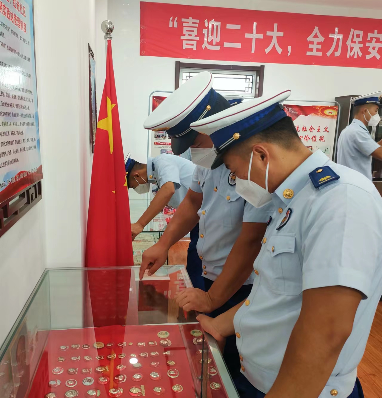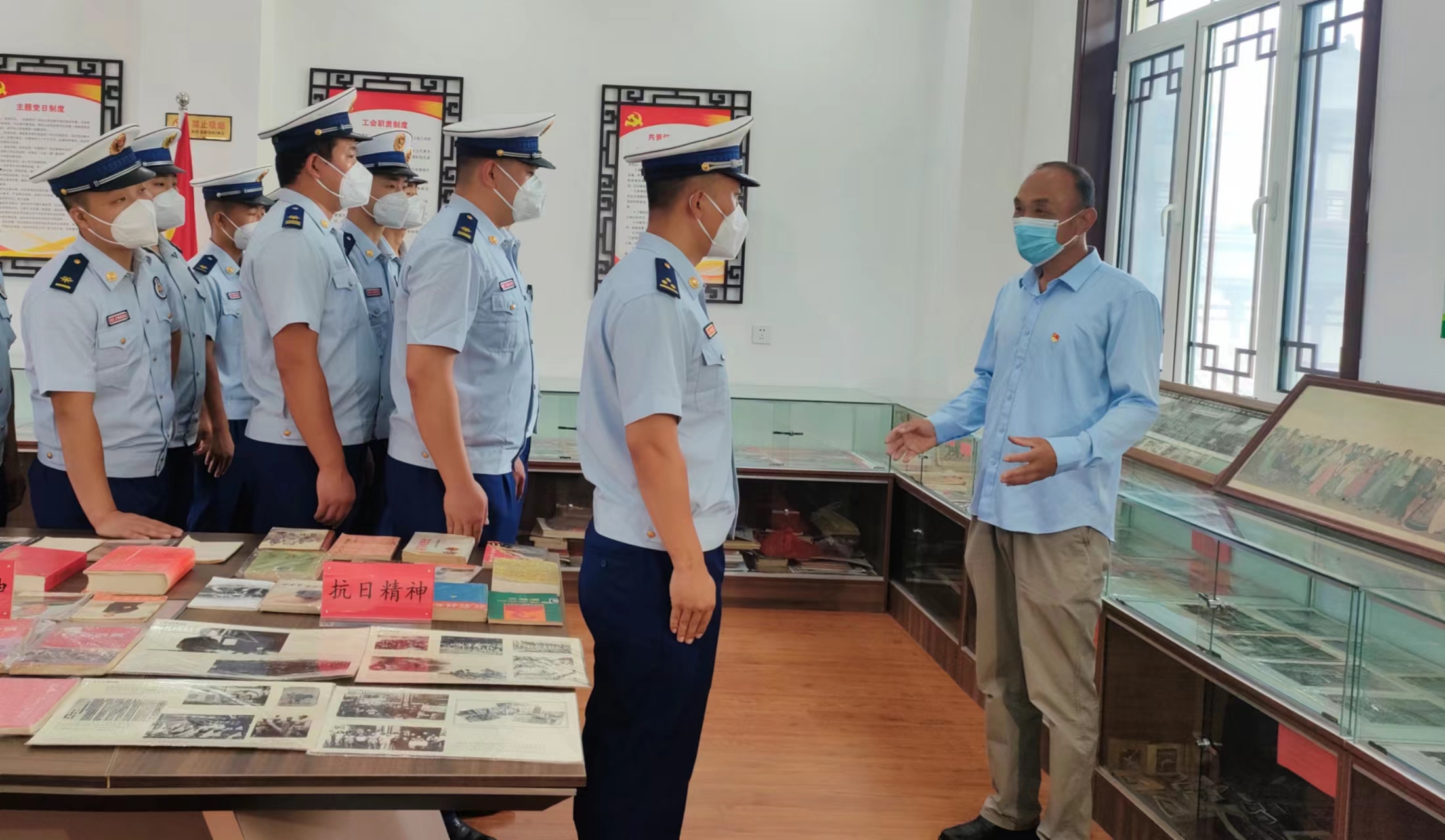 7月26日,衡水市消防救援支队榕花街特勤站的10余名消防指战员来到石立泉红色收藏展室,参观了“喜迎二十大,全力保安全”主题教育展。
