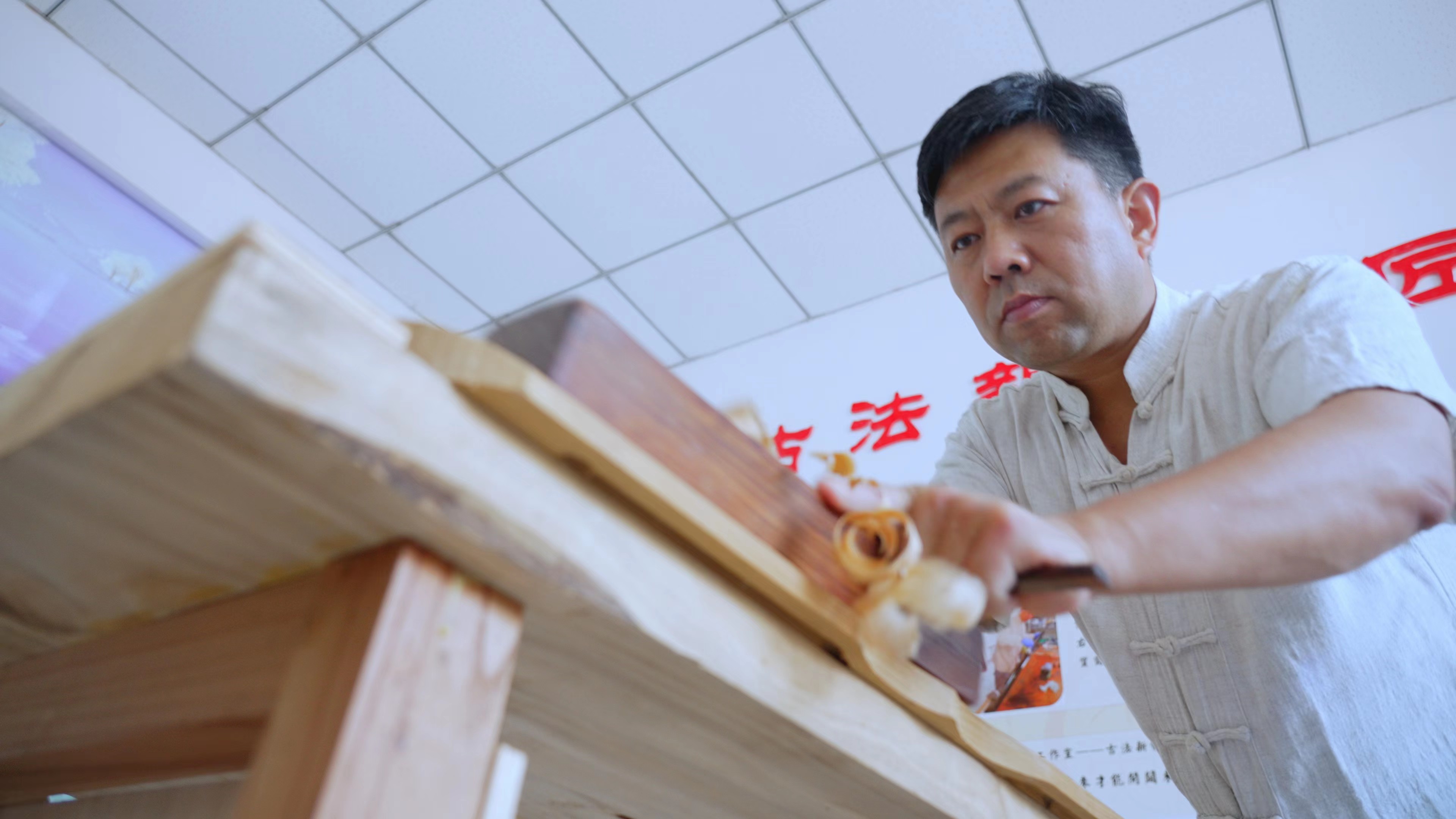 从此,成为一名斫琴师的梦想,一直萦绕在史国林的心里,可他迟迟不敢付诸行动,唯恐任何鲁莽的举止,都会亵渎古琴的美好。2014年,带着成为斫琴师的强烈愿望,史国林找到了自己的朋友——斫琴高手于庆坤,从最基础的挑选木料开始,在“于哥”指点和自己不懈努力下,一步一步迈入了斫琴的神秘殿堂。