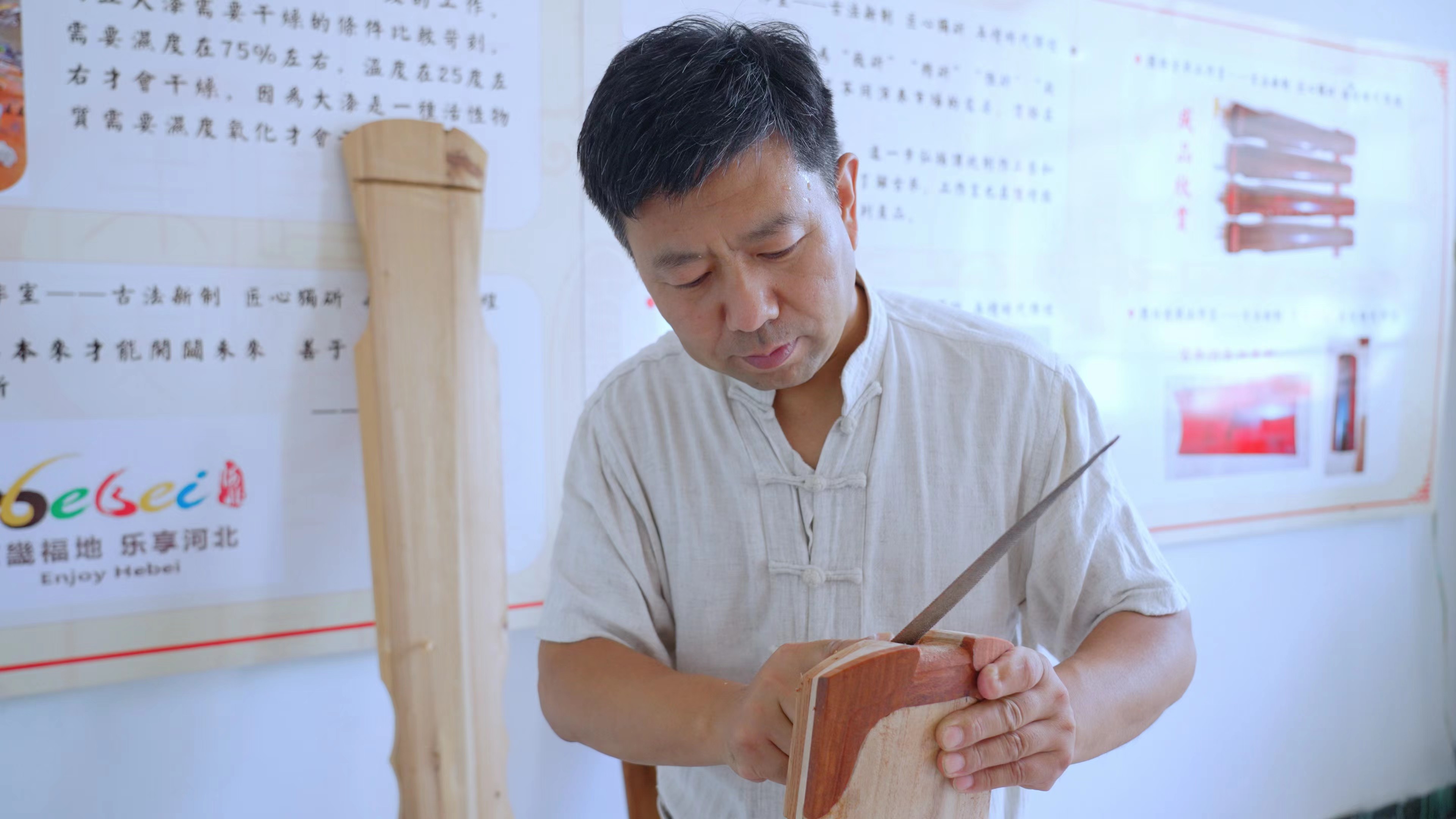 自古以来,古琴一直位列“琴棋书画”之首,背后蕴含的文化意蕴绵延千古。不过当下会弹奏古琴的人越来越少,懂得斫制古琴的人更是寥寥无几。在武邑县龙店镇史家村,有一位默默无闻的斫琴人,十多年来,凭着一颗追求完美的匠心,在一刨一凿中,斫制出一张张清丽秀雅的古琴,也在指尖轻抚间,传承着千年古音和最美中国风……他就是衡水市非物质文化遗产国林古琴制作技艺项目传承人史国林。
