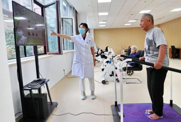 近日,当地居民在秦皇岛市一家京冀合作医疗养老机构做康复治疗。曹建雄摄