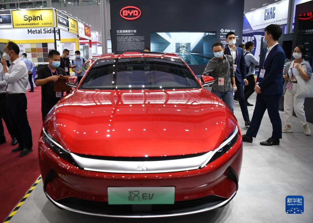 这是在第130届广交会上拍摄的比亚迪新能源汽车(2021年10月15日摄)。新华社记者 邓华 摄