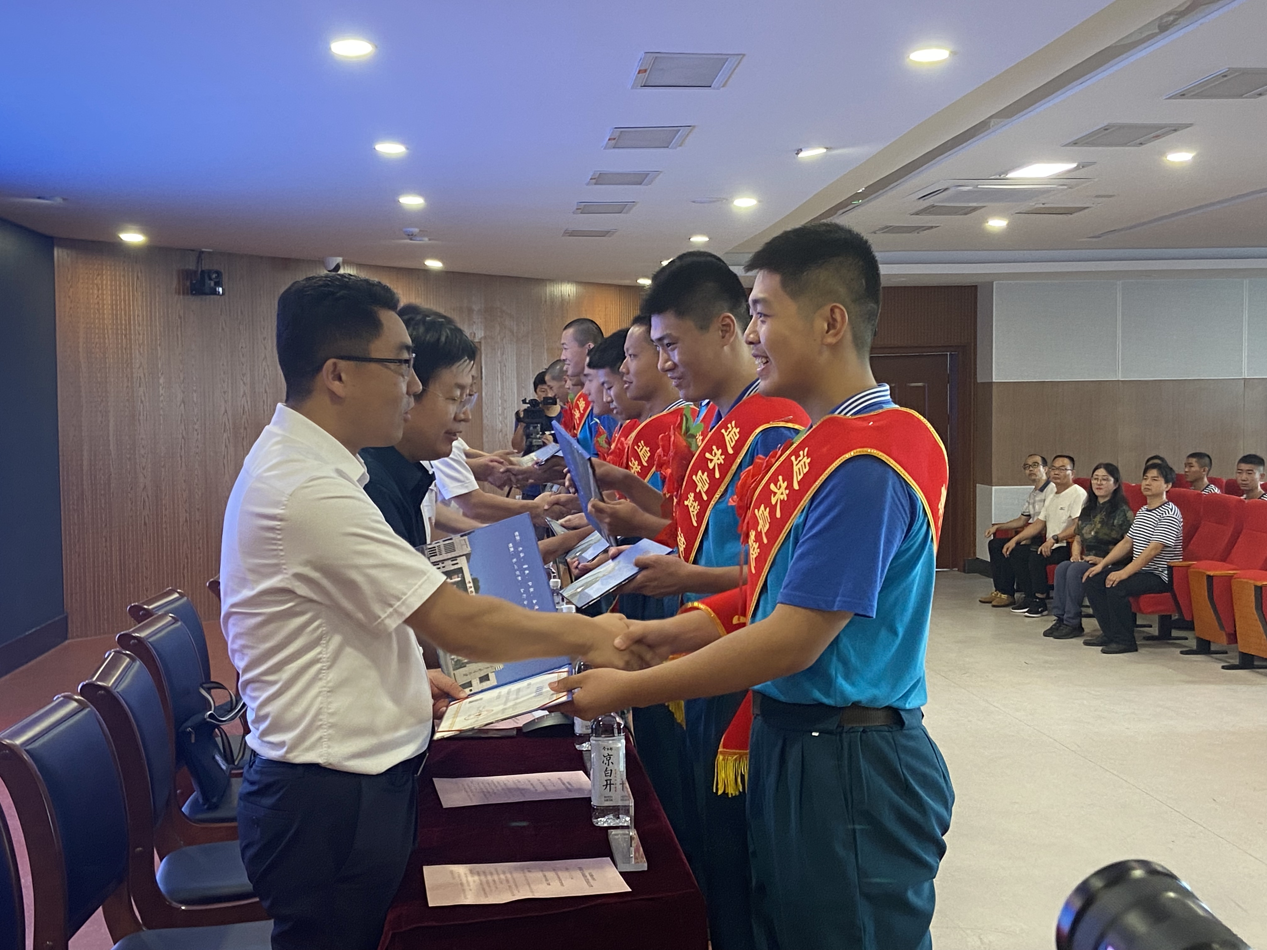 8月1日上午,衡水中学2019级河北省海军青少年航空学校飞行学员录取通知书颁发仪式,在衡中敏行楼报告厅隆重举行。海军政治工作部干部局副局长兼招飞办主任初汉强,衡水市副市长崔海霞,衡水市军分区副司令员董作芳,海军某部部队长杜宝峰,市教育局党组成员、市委教育工委副书记徐晓清,衡水中学校领导以及今年被光荣录取的11名海军飞行学员、2022级海航班新生和家长等上百人参加了仪式。