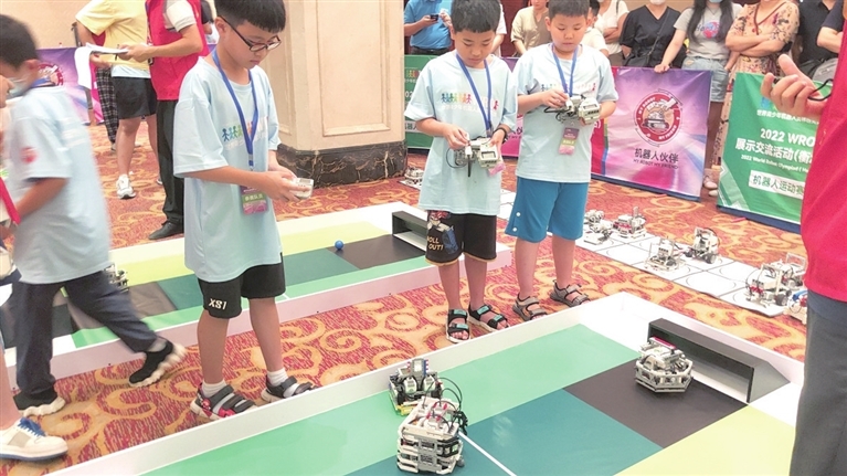 赛场上,选手们自行制作机器人、编写程序,根据比赛规则和任务进行调试、竞技。每个参赛选手尽显风采,竞赛极具观赏性、挑战性,一场比赛,多项竞赛项目,同台竞技,迸发出智慧的火花。