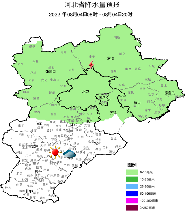 具体天气预报为:8月4日白天,多云,偏南风3-4级,最高气温35~37℃;4日夜间,多云,偏南风3-4级,最低气温27~29℃;8月5日,多云间阴,局部有分散性阵雨或雷阵雨,偏南风3-4级,气温37~28℃;8月6日,多云间阴,局部有阵雨或雷阵雨,气温36~27℃;8月7日,多云转阴,有阵雨或雷阵雨,气温35~27℃;8月8日,阴有阵雨或雷阵雨,局部中雨到大雨,气温32~21℃。