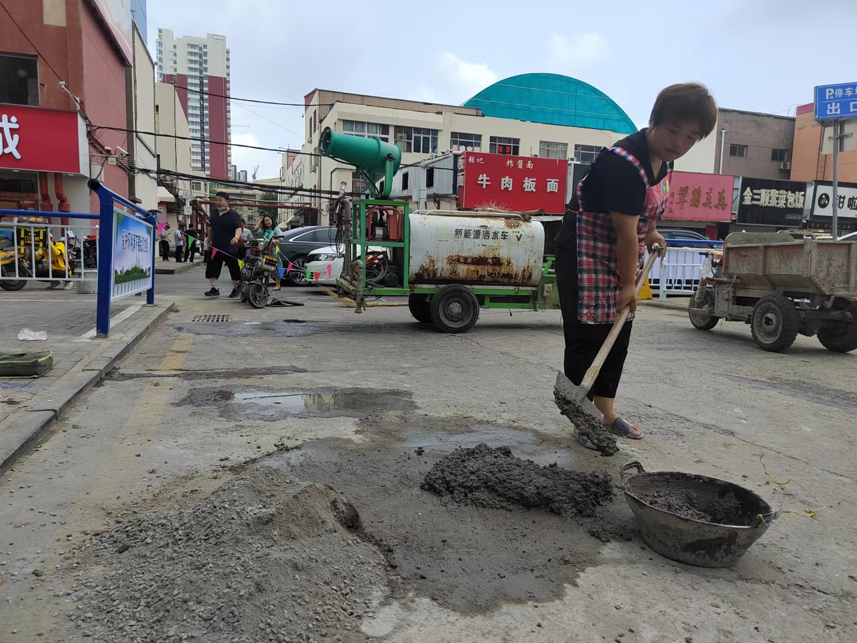 针对部分路面损毁的情况,工作人员对世纪楼南侧路面进行了硬化、对浙江村周边路面进行修补,硬化路面320余平方米,修补路面80余处,新上围栏290余米,更换、维修井盖150套。路面的硬化和修复,解决了商户们的“心病”,保障了来往行人的出行安全。