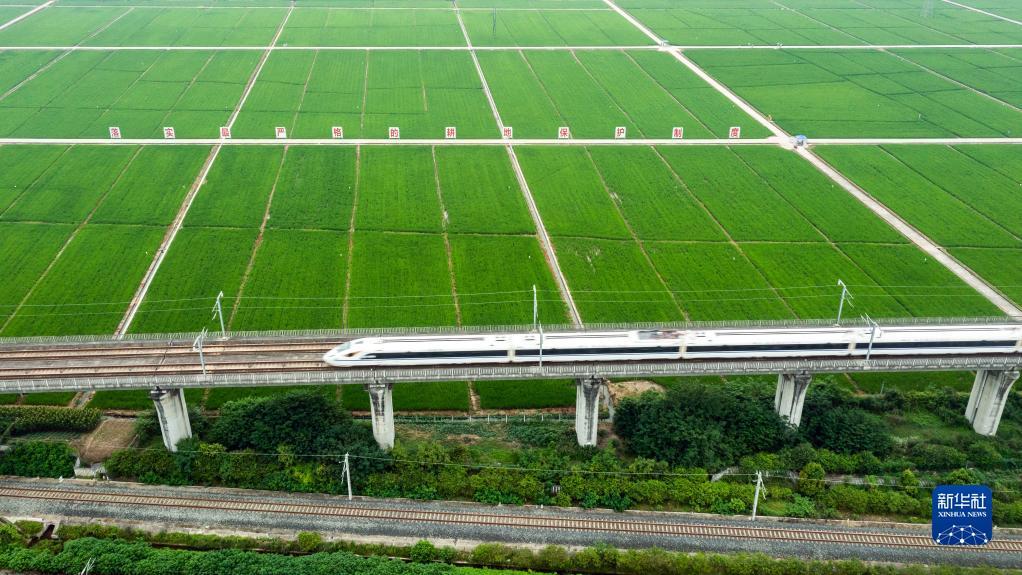 以四川省眉山市东坡区太和镇永丰村高标准水稻种植基地为重要组成部分的东坡区国家现代农业产业园(2022年6月22日摄,无人机照片)。新华社记者 沈伯韩 摄