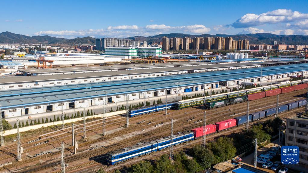 “我们通过中老铁路发送的各类货物总值已逾4.3亿元。”云南中唯仓储物流有限公司负责人说,中老铁路吞吐量大,高效便捷,是跨境贸易的“黄金通道”。