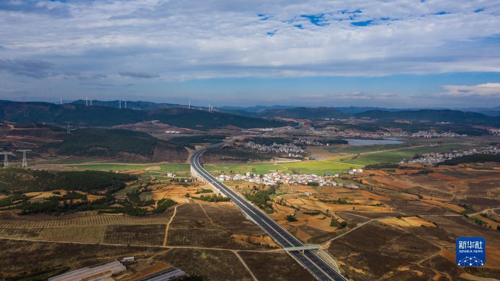 这是2021年通车的云南三清高速一景(2022年1月15日摄,无人机照片)。新华社记者 胡超 摄