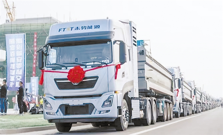 雄安新区至易县运送建筑骨料的氢能重卡。