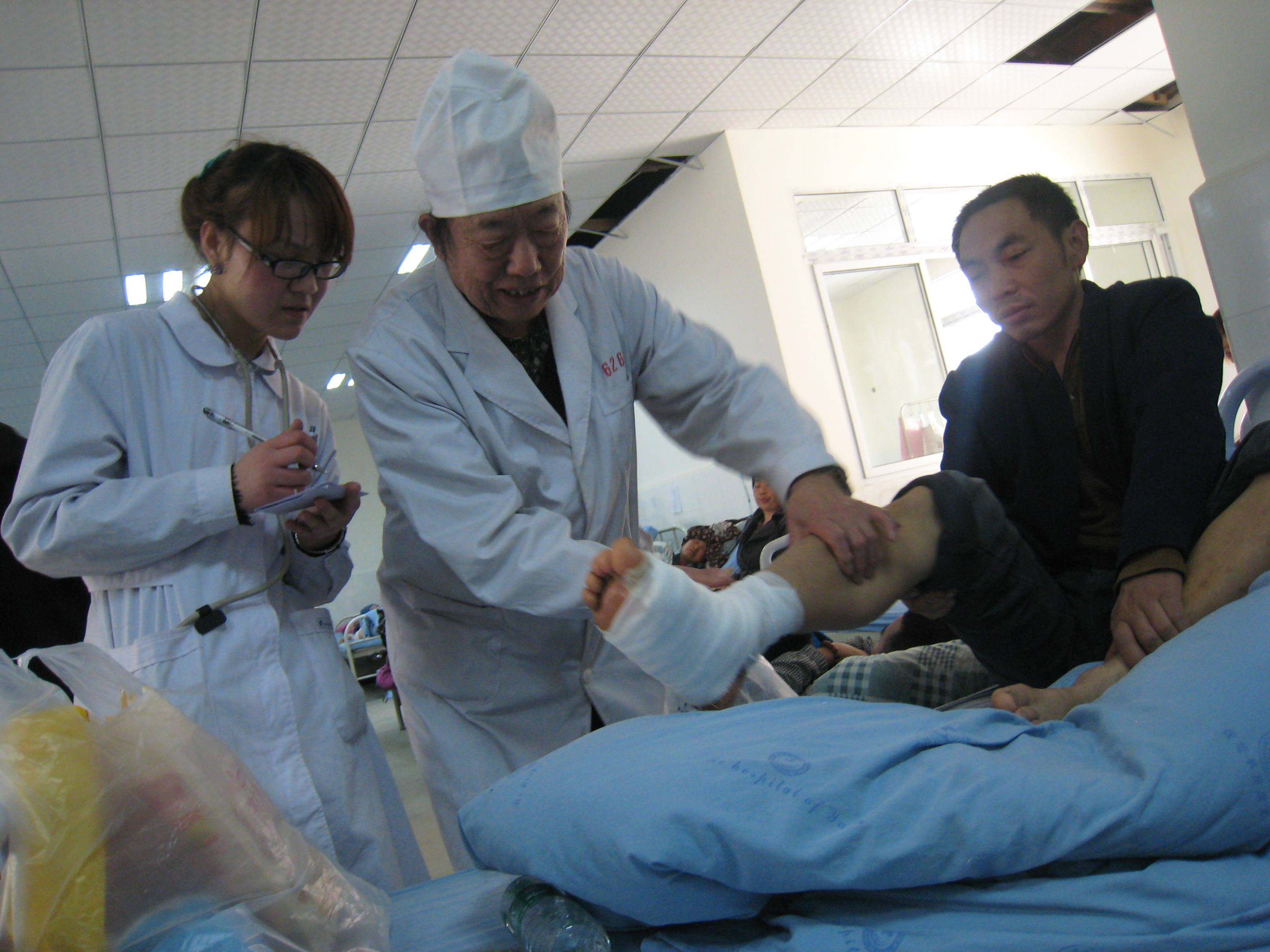 吴殿华在雅安市红十字医院为伤员诊治 。 张占祥摄