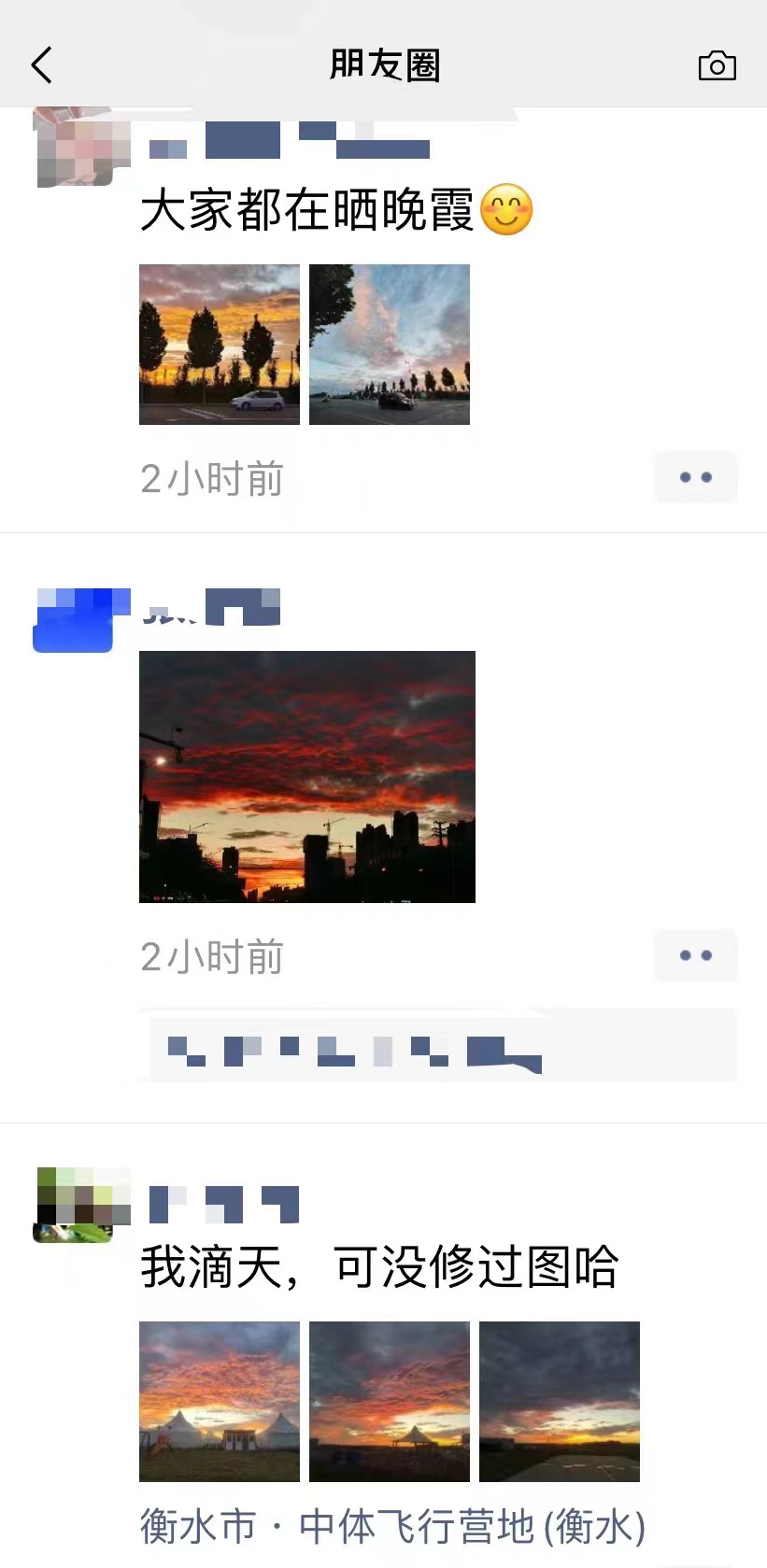 “天边火烧云,秋日晚霞醺。”这是市民尚先生发在朋友圈的自编小诗。
