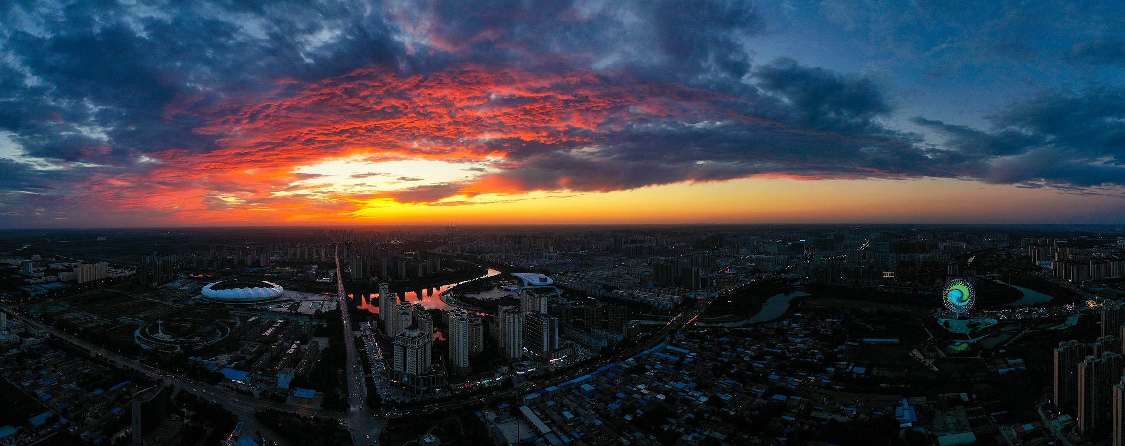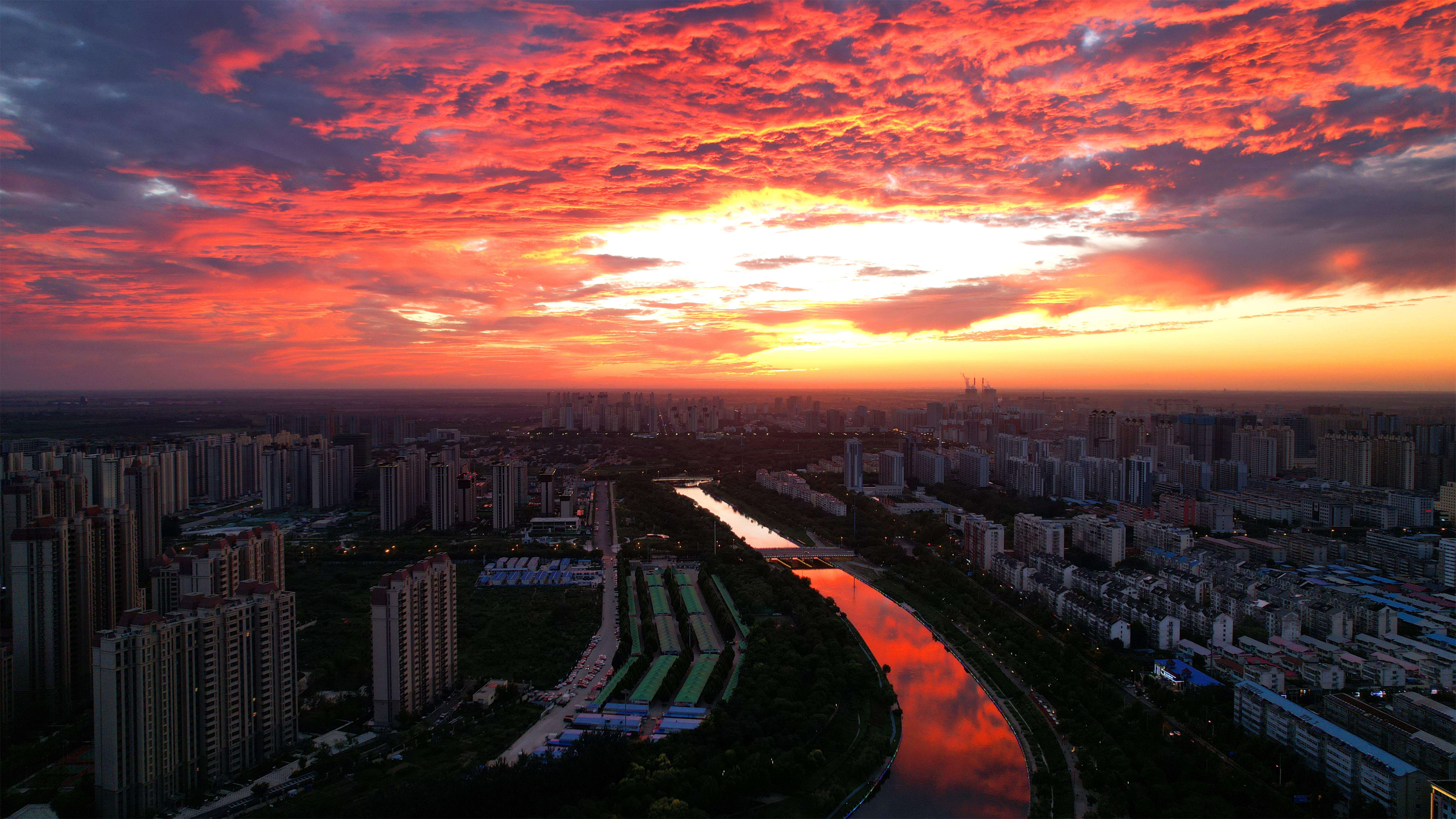 这一年难得见几回的火烧云,美得惊人,不仅染红了天边,染红了整座湖城,也刷爆了衡水人的朋友圈。