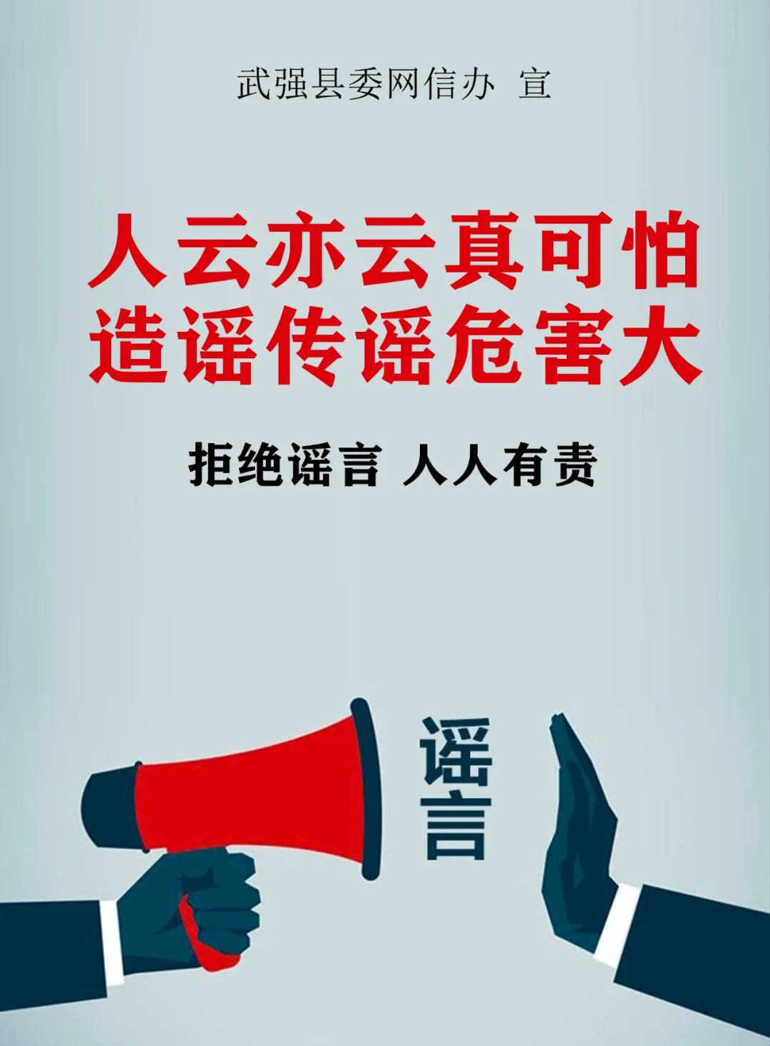 来源:网信武强 点赞 +1 微博 微信 我要评论 发布 相关推荐 衡水市委网信办开展“拒绝网络谣言 净化网络环境”宣传活动 衡水速览 2023-08-21 桃城区委网信办组织开展“拒绝网络谣言 净化网络空间”主题宣传 专题新闻 2023-04-24 桃城区路北街道开展“拒绝网络谣言 净化网络空间”宣传活动 关注 2023-03-31 武邑县委网信办开展“拒绝网络谣言”演讲比赛 专题新闻 2023-01-19 原创海报 | 杜绝网络“招生”谣言 谨防升学上当受骗 专题新闻 2022-07-19 原创海报 | 拒绝网络谣言 维护网络文明 专题新闻 2022-07-14 高考谣言之七:老赖女儿考710分被拒录 专题新闻 2022-05-31 热门 一天 三天 一周 1 拾光纪·马年再会老朋友,上个马年他赠予习近平一匹汗血马 2 衡水:少年走失急坏家人 公交调度员助力寻回 3 衡水文旅春日上新 十大场景开启沉浸式春游新体验 4 衡水发布七大主题线路开启春日盛宴 “湖城花事·衡水有约”诚邀京津冀游客共赴花期 5 “一县一主题”打造沉浸式赏花体验 衡水全面启动“探秘小城故事·共赴春日芳华”主题活动 6 春“植”正当时!衡水市园林中心按下春季补植增绿“加速键” 7 国网景县供电公司:“立体巡检+智慧监控”护航春灌 8 阜城县漫河镇“二月二”群众文艺展演热闹开演 9 安平中燃组织消防安全专项培训 10 贯彻落实全国两会精神|一体推进更高水平平安河北法治河北建设 为实现“十五五”良好开局贡献政法力量 1 拾光纪·马年再会老朋友,上个马年他赠予习近平一匹汗血马 2 衡水推出不动产“带封过户”改革 3 净化网络餐饮安全环境 衡水市569家餐饮外卖被下线 4 抢抓农时忙春管 科技赋能保丰产 ——衡水市桃城区春管春种见闻 5 饶阳县机械化作业助力红薯产业跑出 振兴“加速度” 6 春风启新程 银龄绽芳华 ——衡水老年大学2026年春季新学期开学啦 7 衡水市商务局系列“组合拳”全链条赋能企业“出海”拓市场 8 【新闻发布】 衡水发布“双走双帮”专项行动方案 千万元资金直击特色产业集群痛点 9 【“十五五”开局看衡水】数智领航“丝”路新程——安平丝网产业蝶变再升级 10 老场景唤醒温暖记忆 冀州老街开启常态化运营 1 拾光纪·马年再会老朋友,上个马年他赠予习近平一匹汗血马 2 人勤春来早 春管正当时——衡水市扎实推进春季农业生产纪实 3 衡水发布2月份食品安全“红黑榜” 194家生产经营主体上榜 4 衡水市区宝云公园:修剪养护已完工 静待花开映日红 5 当“超级充电宝”装上“智慧大脑”——河北武强鸿布储能电站探访 6 把“最活跃地带”打造成“最坚强阵地” 衡水以三大抓手破题新就业群体党建 7 衡水市启动社会救助兜底保障集中核查工作 8 今年衡水将完成200户特殊困难老年人家庭适老化改造 9 衡水市环卫中心开展便道冲洗专项行动 为城市环境“洗颜换妆” 10 衡水籍运动员米兰冬残奥会上再摘银! 王鹏耀获单板滑雪项目亚军 广告 广告 广告 24小时 1 衡水市第三人民医院“爱肝日”惠民活动受热捧——采血筛查、影像诊断、中医理疗一站式服务市民 2 两个月新增经营主体177家 同比增长近四成 衡水海关厚植沃土育“新苗” 3 千年文脉贯古今 一城新风醉宾朋 ——武邑县全力推动文化旅游产业高质量发展 4 荐读|衡水思水 5 把春耕搬上屏幕 武邑“新农人”从田间忙到“云端” 6 衡水市武邑县打出“组合拳”力夺首季“开门红” 7 衡水市武邑县以产教融合为抓手赋能县域经济高质量发展 8 河北衡水:春日公园乐融融 文化生活暖人心 9 “一县一主题”打造沉浸式赏花体验 衡水全面启动“探秘小城故事·共赴春日芳华”主题活动 10 衡水文旅春日上新 十大场景开启沉浸式春游新体验
