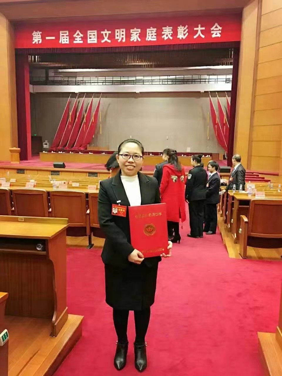 马红在第一届全国文明家庭表彰大会现场 资料图片