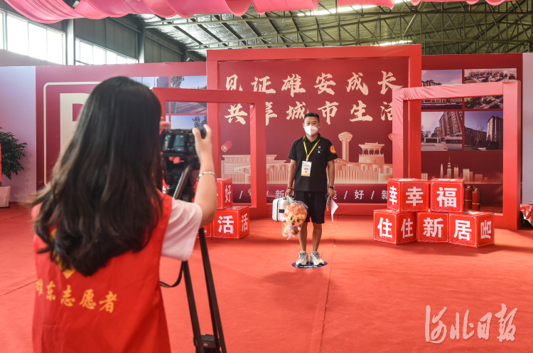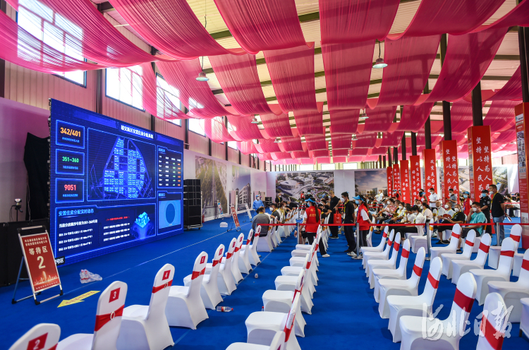 8月15日,雄东片区首批安置住房分配现场摇号工作摇号区,居民在工作人员的引导下完成摇号。 河北日报记者李东宇摄