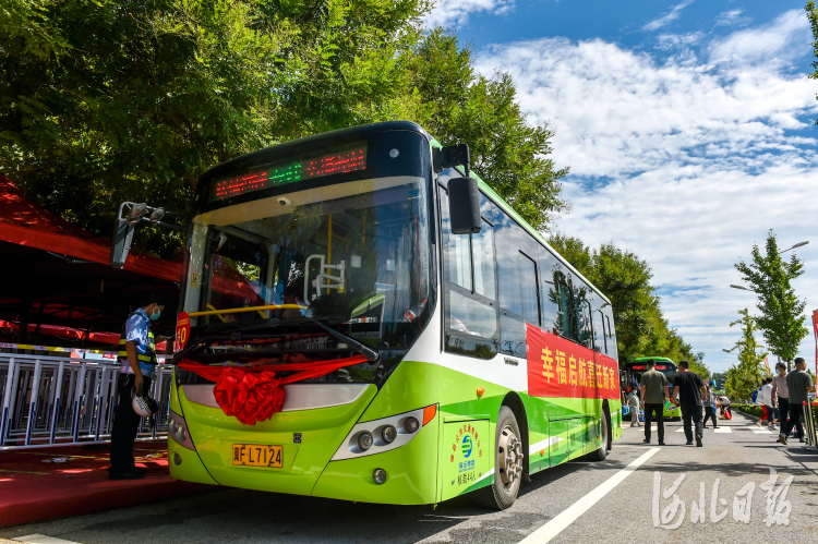 8月15日,居民乘坐专门的车辆从接驳区前往摇号区。 河北日报记者李东宇摄