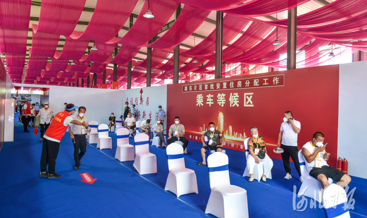 8月15日,雄东片区首批安置住房分配现场摇号工作接驳区,等待前往摇号区的居民。 河北日报记者李东宇摄
