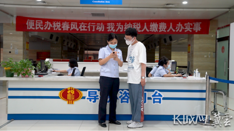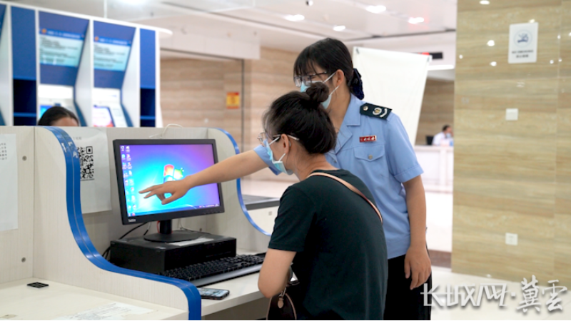 国家税务总局辛集市税务局工作人员给纳税人解答实际操作问题。长城网·冀云客户端记者 富心迪 摄