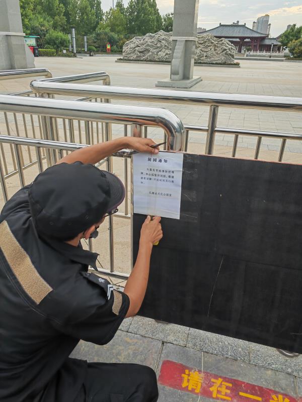 8月20日上午,在人民公园,工作人员正在对园内的座椅、垃圾桶、健身器材、公厕等公共设施进行全方位消杀,对地面进行保洁,在显眼位置,也悬挂或设置了疫情防控相关提醒。“静默管理通告一发,我们就在公园入口处张贴了闭园通知,这两天遇到个别市民前来,我们也都会及时劝返。”人民公园一位工作人员说。