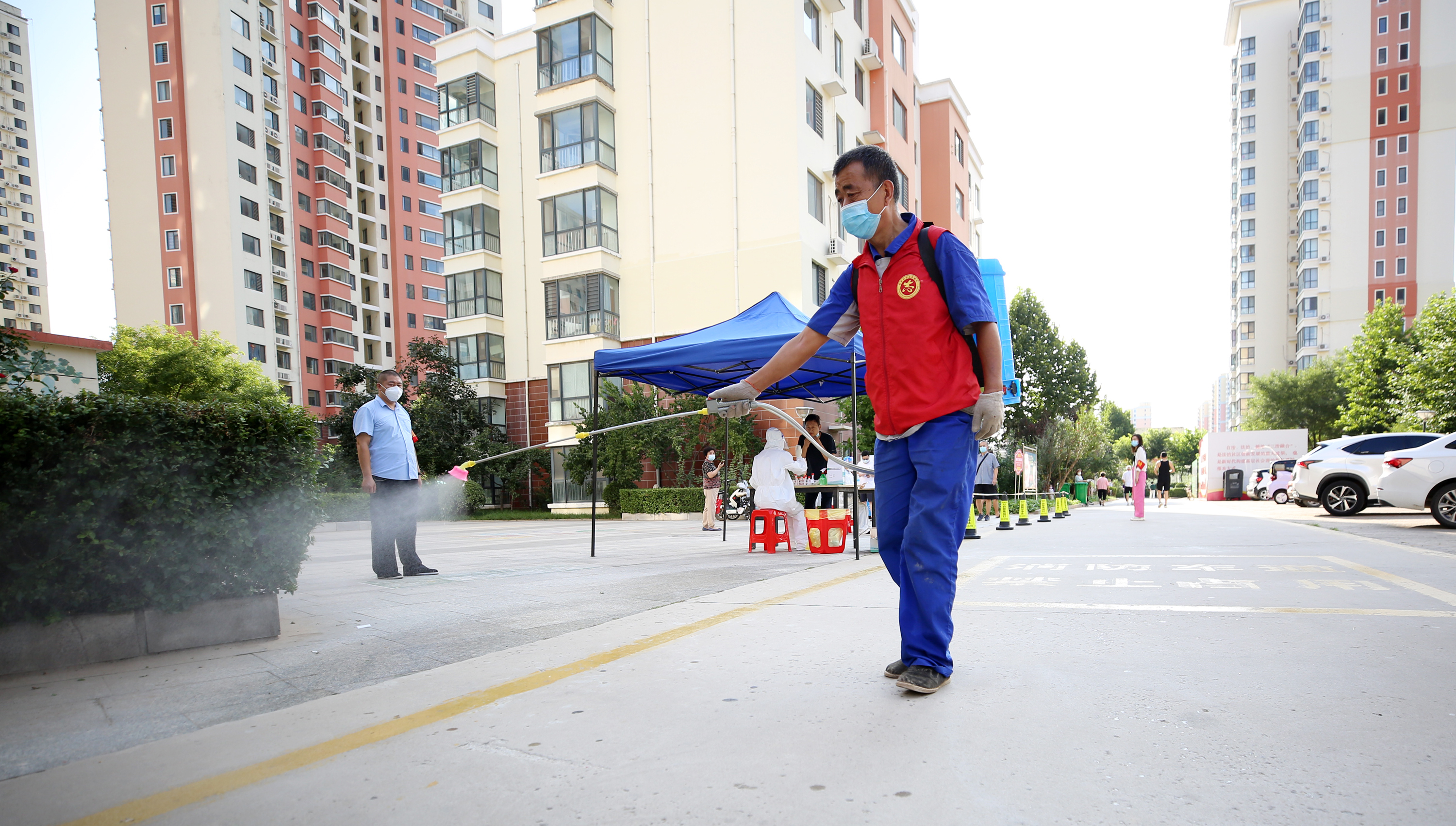 8月18日18时至8月20日24时,我市主城区(桃城区、高新区、滨湖新区)实行静默管理。社区虽小,但连着千家万户。在这个特殊的时刻,在中华街道办丽景社区的倡导下,党员自觉向社区报到,组成志愿者队伍,贡献自己的一份力量,丽景社区的工作者们加班加点地工作,保障物资供应,保证居民安全,筑牢疫情防控的“防控墙”。他们加强在住宅区的巡逻,对外出人员进行劝阻。丽景社区为组织好居民核酸检测,不断调整优化工作方式,让居民能够快速、安全地做完核酸,同时,社区组织人员及时做好消杀工作,保证住宅区范围内的安全。