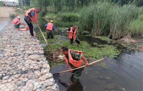 “我们早上7点半就来了,上午水流太急,我们就在岸边和坝上拦垃圾,中午11点多水流不那么急了,就用船下去捞了。”杨志强说,沙河村在戴河上游,要在这里把河道垃圾拦住,免得流到下游去。