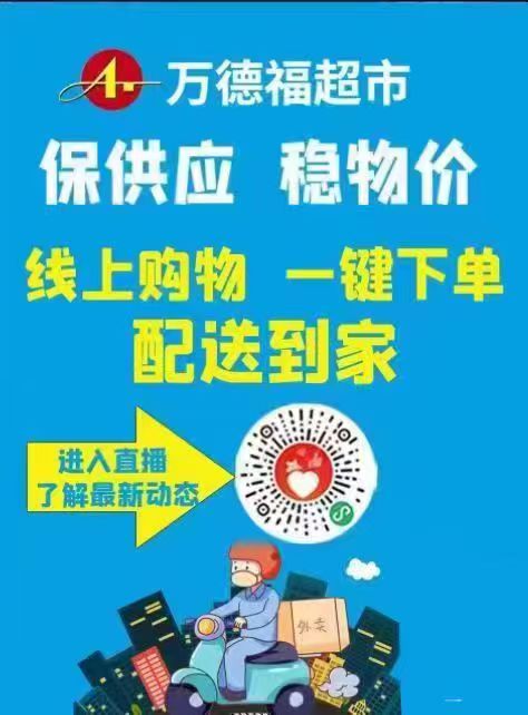 目前,我市主城区6家保供商超(下属共42家门店),所储备的各类货品充足,可确保主城区广大市民的消费需求。现6家保供商超已全部开通了线上购物微信小程序(具体内容附后),并配备了2300多名送货人员,可满足主城区广大居民的生活必需品配送需求。市民朋友可以就近通过手机下单订购,配送人员将第一时间送货至小区门口,交社区工作人员分发,或电话通知订购市民领取。
