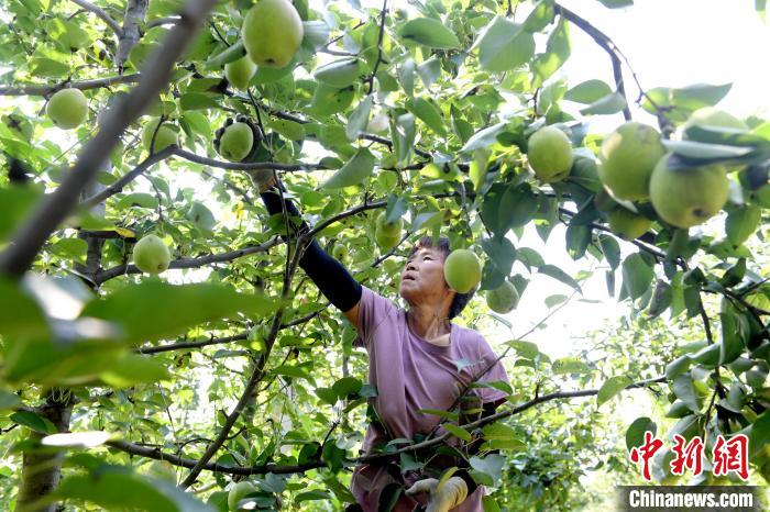果农在采摘梨果。 苗凤强 摄
